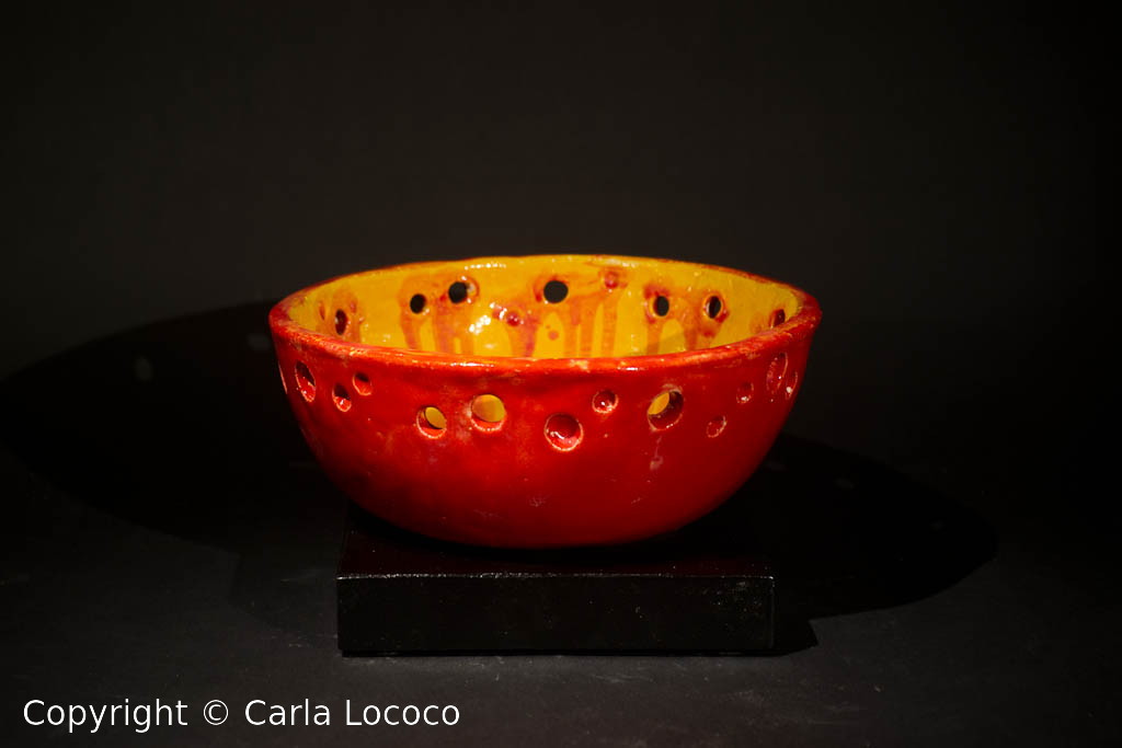 Lodernde Schale mit feurigen Farben glasiert. Ideal zum verschenken oder auf dem eigenen Tisch Leckereien zu servieren. Einzelstück nicht für Spülmaschine oder Mikrowelle geeignet.